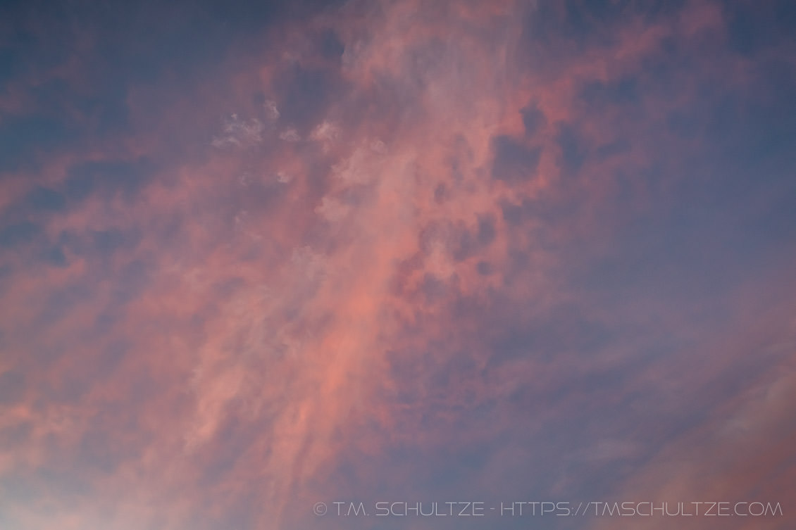 So what I do personally love about this photograph, ME56?  The pastels are beautiful.  There are reds, pinks, oranges, and blues.  One other element I love are the whites.  People photographically tend to think of clouds in 2D, as if they are flat.  Of course, we know that isn’t true, because we see clouds that vary in altitude and type.  But they are all “flat” in photography, since they are always at the infinity end of your lens.