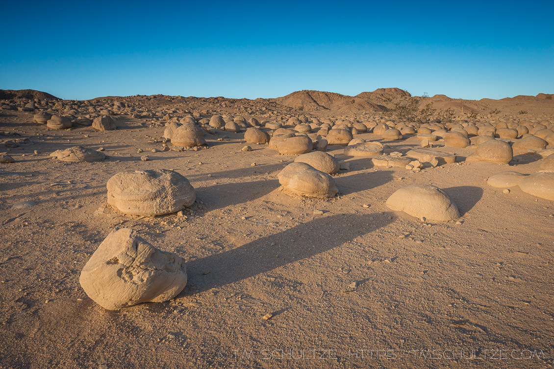 The second image is from our trip to the Pumpkin Patch.  At the time, this was my second visit, but we were coming in a different way.  An unnamed friend had saved directions on Google, taking cell phone coverage for granted.  You can guess how that went in 2014.  A second unnamed friend, driving, got pretty reckless driving way too fast worried we were going to miss sunrise.  Note the lack of cloud coverage – the stakes for a “nice sunrise” image were lower than we wanted to admit.  At one point, he hit a rough spot on the dirt road, and my cooler actually hit the ceiling of his cab.  We had to tell him to chill out.