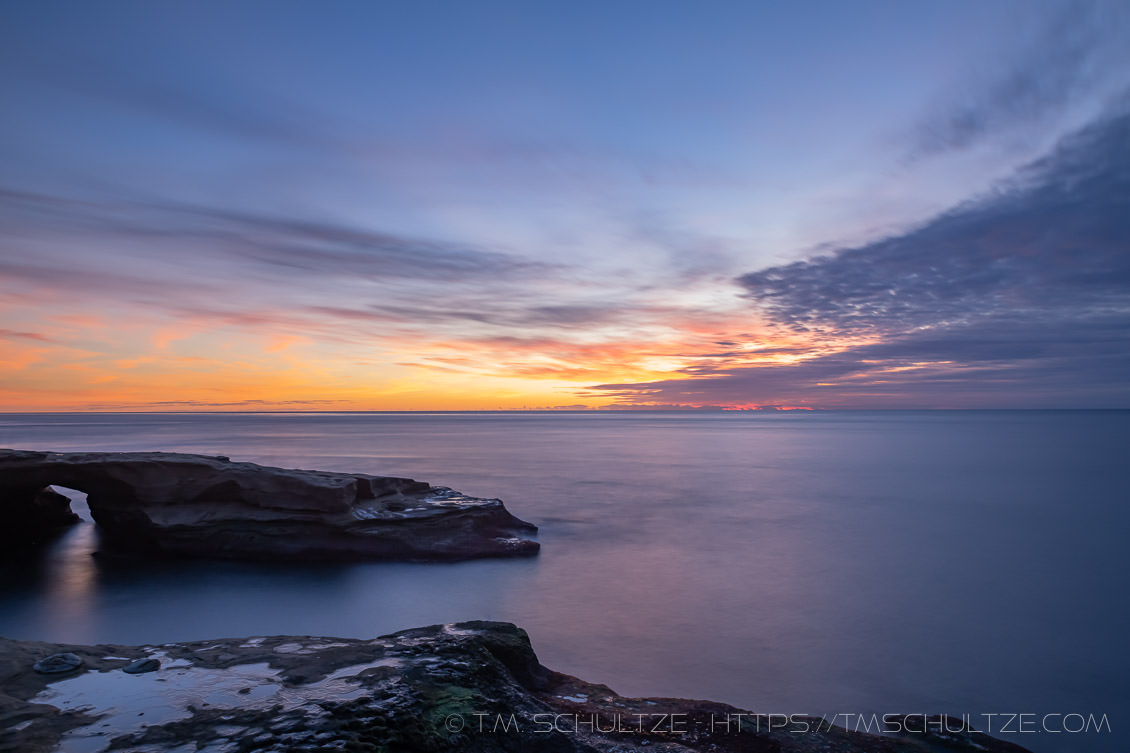 I have been chasing some version of this image at Sunset Cliffs for many years. I still don’t have the result I want. However, I feel this last image of 2019 represents something I have gravitated to. I love these slow, contemplative, landscape images. The coast, viewed quickly, seems like a turbulent and sometimes violent place. Viewed slower, in this case, about 30 seconds mapped to a single photographic moment, the ocean reveals itself to be peaceful, still, tranquil, and much more quiet.