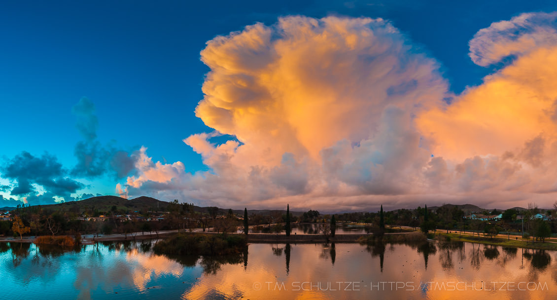 The resulting image was a 28 image panorama that Lightroom had no issue stitching together. As you can see, the last light as the huge, high, clouds towered over Santee Lakes was amazing. The yellows on the high clouds got deeper and deeper just after sunset, before the light vanished all at once! Those are the brief moments that build memories. As always, it is great to own your own backyard, and have a good, quick, place to go when you are at home and the light sets up perfectly.