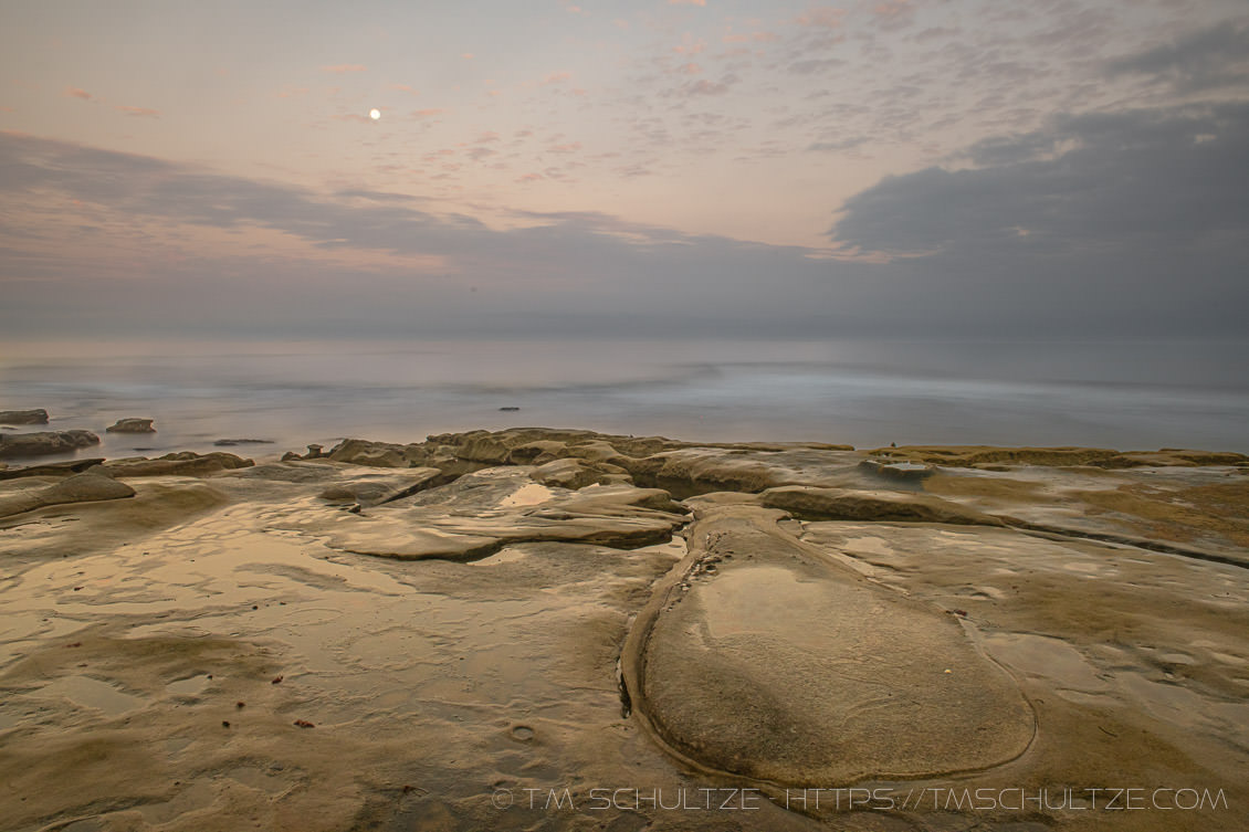 My Photo Club had an early outing at La Jolla’s Hospitals Reef, and I thought I would give it a shot.  The tide was low.  There was a moonset.  And I have previously enjoyed coming here in the morning, whereas the sunsets at Hospitals have gotten tired online.