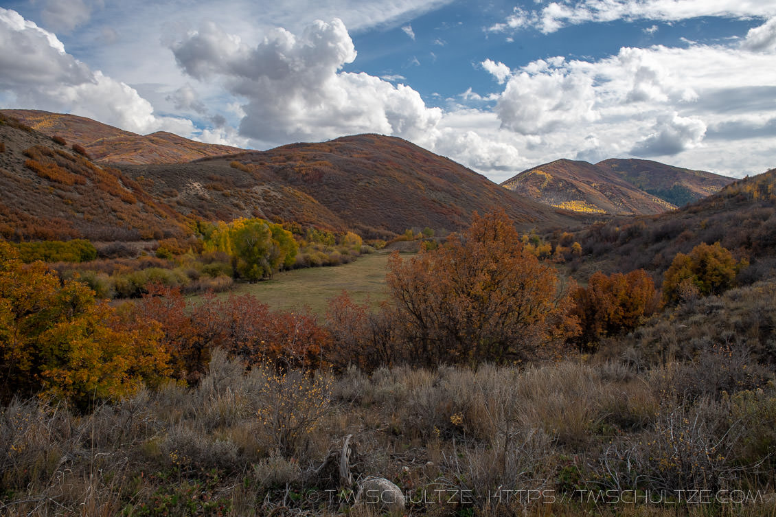 Many of these photographs were taken in some of the sub-alpine canyons in the area. On the Eastern side of the Wasatch, the rolling terrain reminds me a little of the rangelands of New Mexico, while the canyons have more dry shrubs that somewhat remind me of the chaparral country in California. And they are beautiful right now. The one disappointment is the ongoing drought, which is affecting the entire Western United States. Many of Utah’s reservoirs are nearly empty. Let’s hope a moderate but steady wet season can overpower this La Niña weather pattern and bring some relief this Winter.