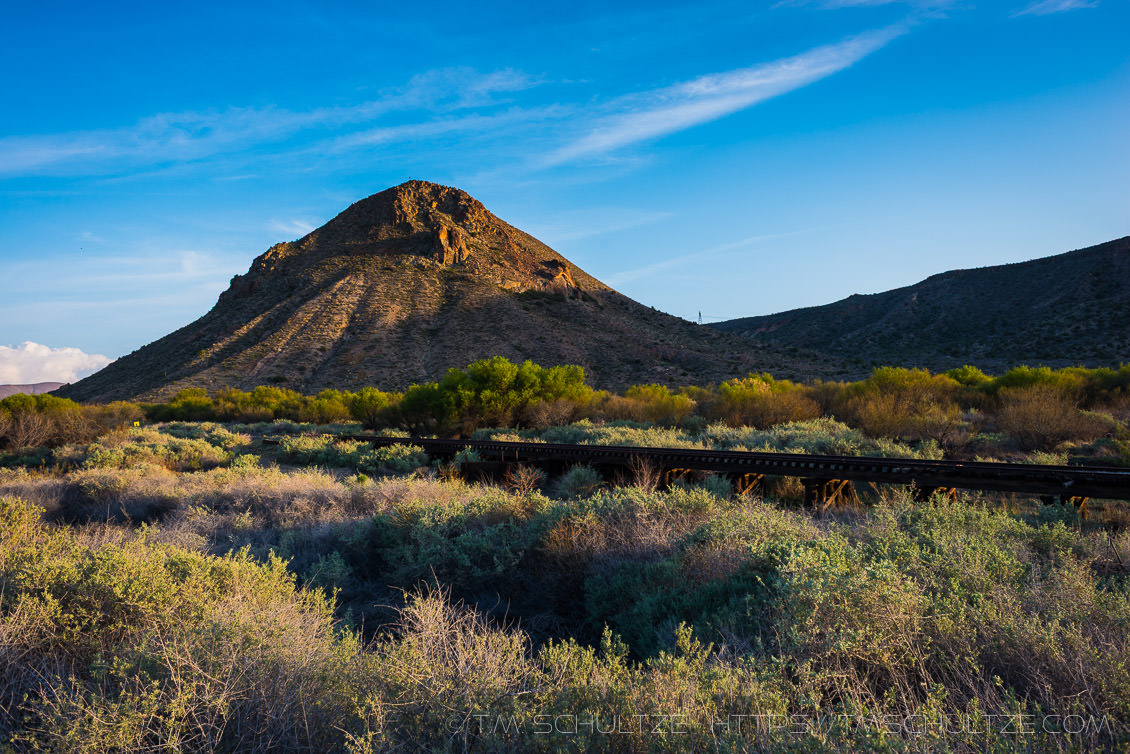 At the Interstate 8 Jacumba Exit, most people exit to get gas. In fact, Jacumba Hot Springs is several miles South of here. But if you follow the dirt road West, there is a beautiful view of the San Diego-Arizona Eastern Railway and Round Mountain.